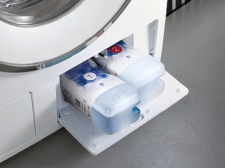 מכונת כביסה פתח קדמי מסדרת W1 עם תרמילי המזיגה הכפולה TwinDos, וקפסולות המינון CapDosing PowerWash