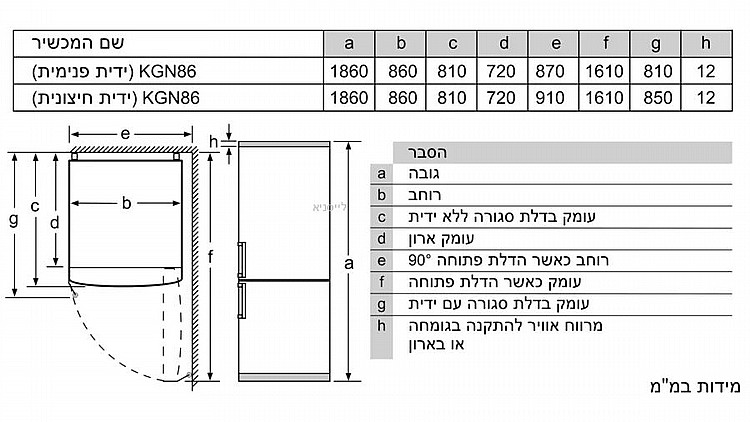 פתיחת דלת ימנית, ניתן לשנות את כיוון פתיחת הדלת, פתיחה על ציר אין צורך להשאיר מקום מהקיר